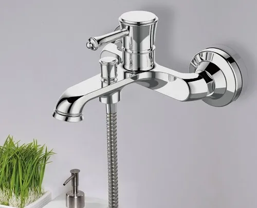 סוללה לאמבטיה כולל צינור ומזלף מדגם פלורי.