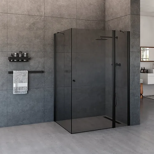 מקלחון פינתי דלת ודופן קבועה + דופן קבועה זכוכית אפורה אלברט 70-145 ס"מ שחור מט DorRaphael