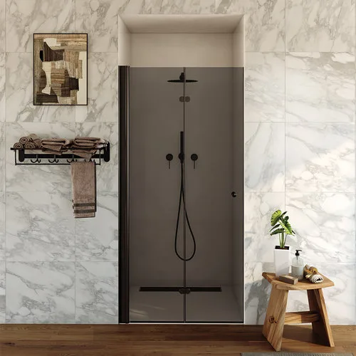 מקלחון חזית דלת הרמוניקה זכוכית אפורה דגלס 66-98 ס"מ שחור מט DorRaphael