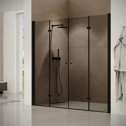 מקלחון חזית 2 דלתות הרמוניקה זכוכית אפורה נלסון 132-196 ס"מ שחור מט DorRaphael