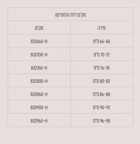 מידה: 132-196 ס"מ ניתן לבחירה. (לרשום בהערות את המידה הרצויה מטבלת המידות).