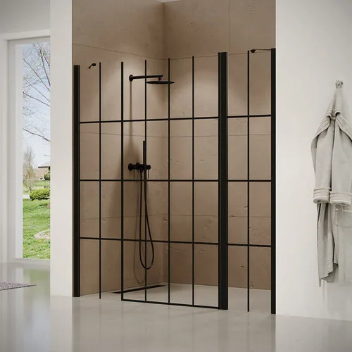 מקלחון חזית 2 דפנות קבועות + דלת שרלטון 122-205 ס"מ שחור מט DorRaphael