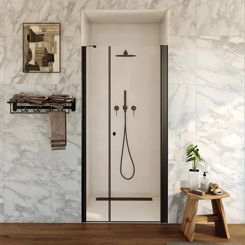 מקלחון חזית דופן קבועה + דלת על ציר ראסל 131-150 ס"מ שחור מט DorRaphael