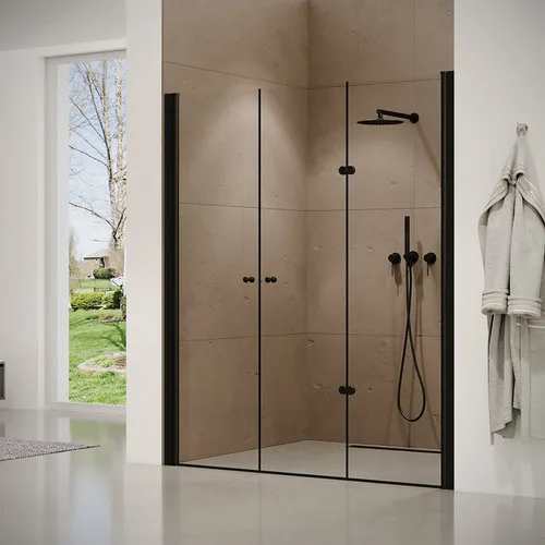 מקלחון חזית דלת הרמוניקה + דלת על ציר פאיטו 132-160 ס"מ שחור מט DorRaphael