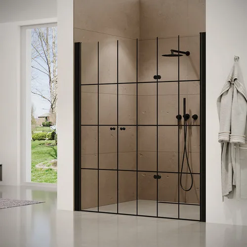 מקלחון חזית דלת הרמוניקה + דלת על ציר פאיטו 165-190 ס"מ שחור מט DorRaphael