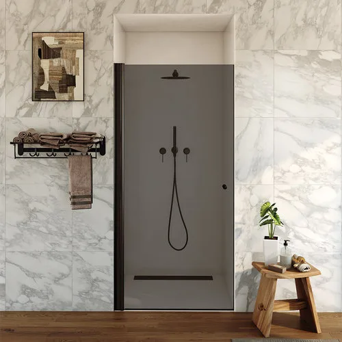 מקלחון חזית דלת על ציר זכוכית אפורה מארטין 66-93 ס"מ שחור מט DorRaphael