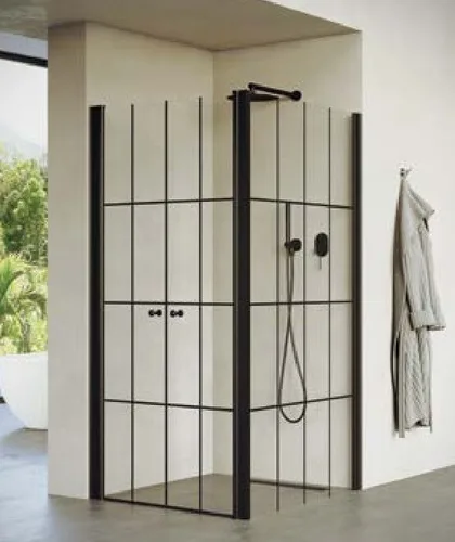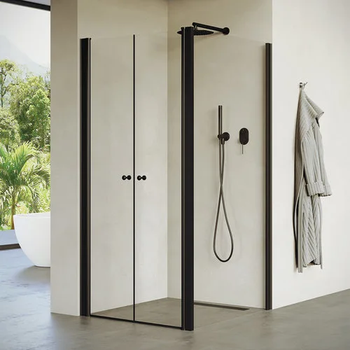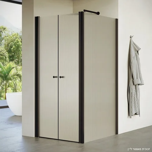 מקלחון פינתי 2 דלתות + דופן צד קבועה באקר 96-142.5 ס"מ שחור מט DorRaphael