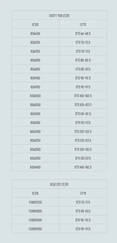 מידה: 96-142.5 ס"מ ניתן לבחירה. (לרשום בהערות את המידה הרצויה לפי טבלת המידות)