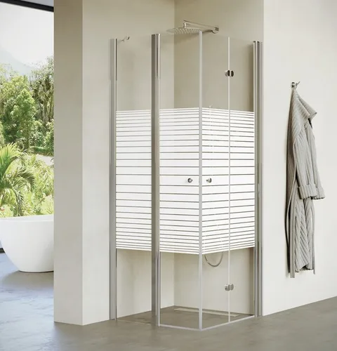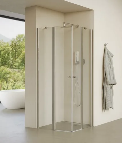 מקלחון פינתי דופן קבועה ודלת + דלת הרמוניקה טולוז 66-98 ס"מ ניקל כרום DorRaphael