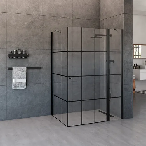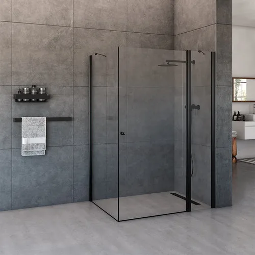מקלחון פינתי דלת ודופן קבועה + דופן קבועה אלברט 70-145 ס"מ שחור מט DorRaphael