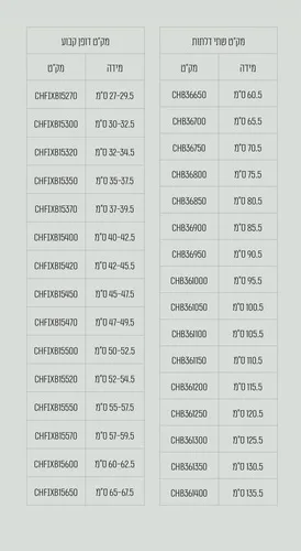 מידה: 121-160 ס"מ ניתן לבחירה. (לרשום בהערות את המידה הרצויה מטבלת המידות).