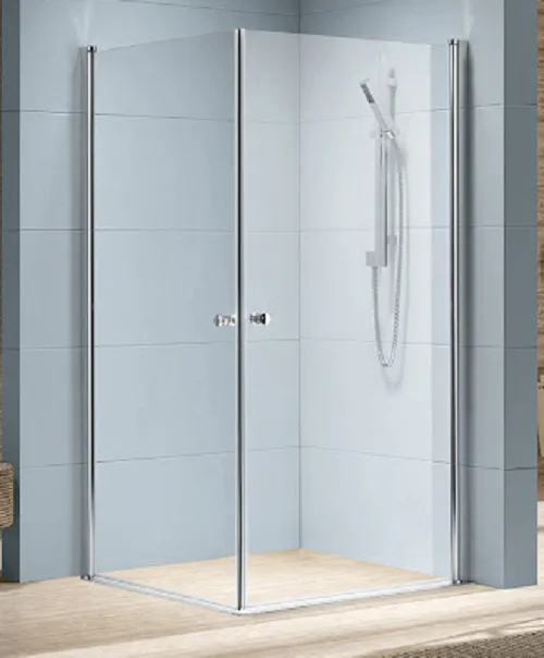 מקלחון פינתי דגם קולומבו. 2 דלתות על ציר נפתחות פנימה והחוצה.