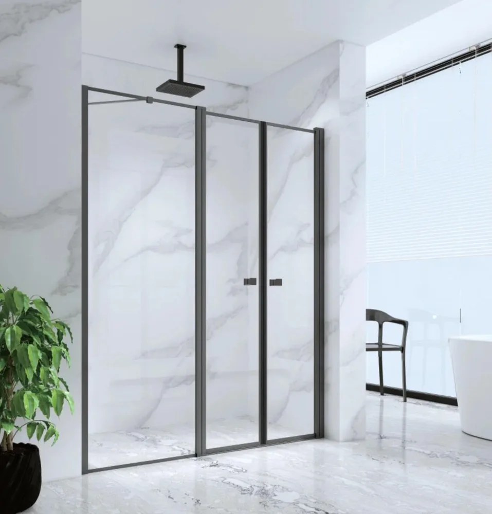 מקלחון חזית מדגם מקאלן 60, בעל 2 דלתות על ציר הנפתחות פנימה והחוצה + דופן קבועה.