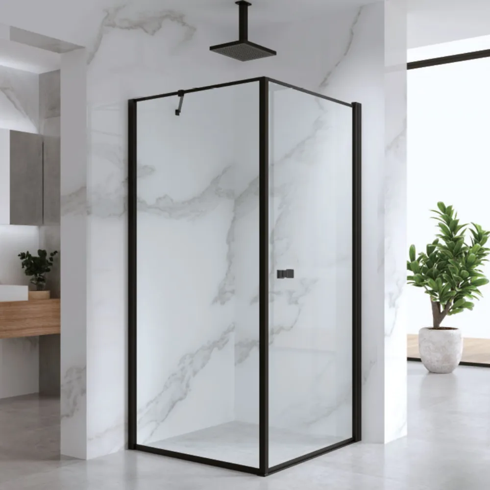 מקלחון פינתי מדגם ג’ייסון בעל דלת על ציר הנפתחת החוצה בלבד + דופן אחת קבועה.