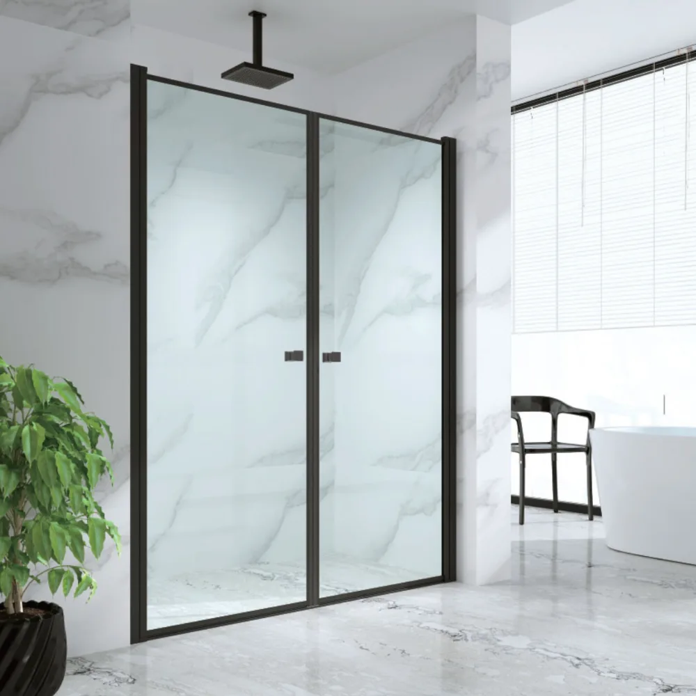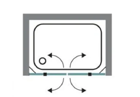 מקלחון חזית מדגם קליר בעל 2 דלתות על ציר הנפתחות פנימה והחוצה.