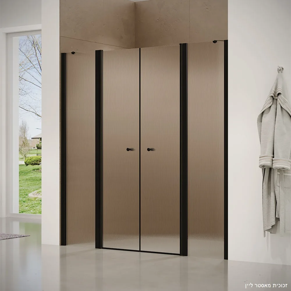 מקלחון חזית 2 דפנות קבועות 2 דלתות על ציר אנדרסון זכוכית גלינה 121-265 סמ שחור מט - דור רפאל