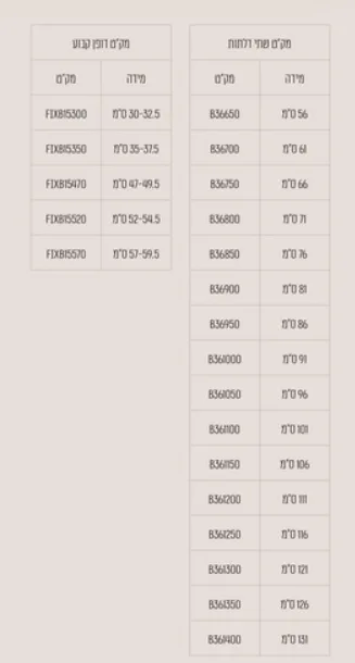 מידה: 121-265 ס"מ ניתן לבחירה. (לרשום בהערות את המידה הרצויה מטבלת המידות).