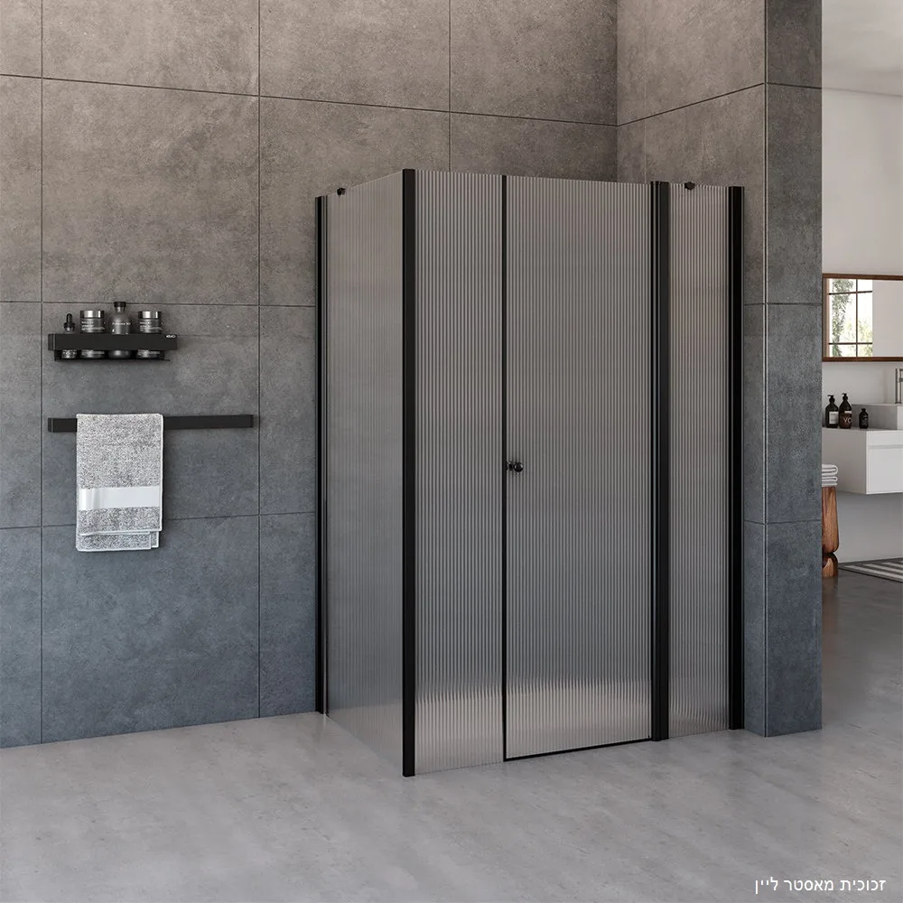 מקלחון פינתי 2 דפנות קבועות ודלת דופן קבועה לואיס זכוכית גלינה 75-190 סמ שחור מט - דור רפאל