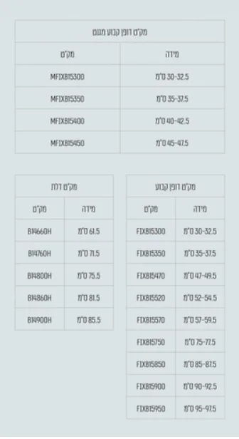 מידה: 75-190 ס"מ ניתן לבחירה. (לרשום בהערות את המידות הרצויות לפי טבלת המידות)