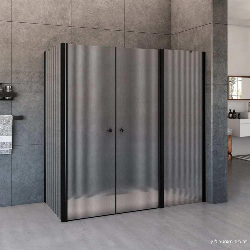 מקלחון פינתי דופן קבועה ו2 דלתות דופן צד קבועה טמפל זכוכית גלינה 75-220 סמ שחור מט - דור רפאל