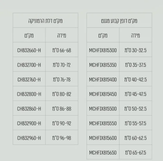 צבע פרופיל: ניקל כרום.