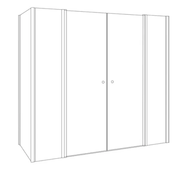 בעל חזית עם 2 דפנות קבועות ו2 דלתות על ציר + דופן צד קבועה.