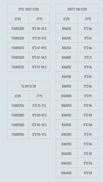 מידה: 75-260 ס"מ ניתן לבחירה. (לרשום בהערות את המידה הרצויה מטבלת המידות).