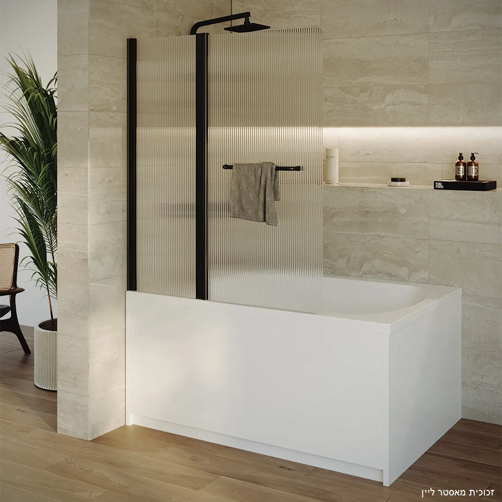 אמבטיון דופן קבועה דלת כנף גקסון זכוכית גלינה 120 סמ שחור מט - דור רפאל