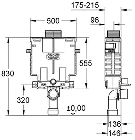 מיכל הדחה סמוי נמוך להתקנת לחצן עליון או חזית GROHE - גרואה 38415001 GROHE גרואה