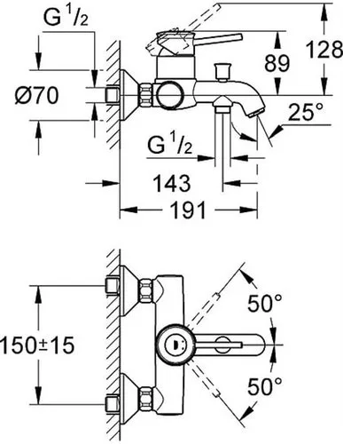 סוללה חיצונית לאמבט באו קלאסיק BAUCLASSIC כרום GROHE - גרואה 32865000 GROHE גרואה