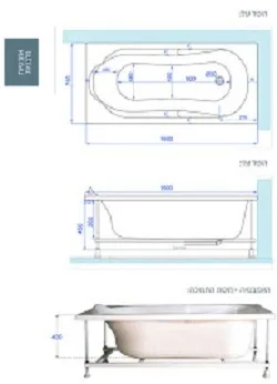 תכולת מים: 150 ליטר. משקל: 25 ק"ג. האמבטיה כוללת אנטיסליפ נגד החלקה וחיזוק פלדה היקפי.