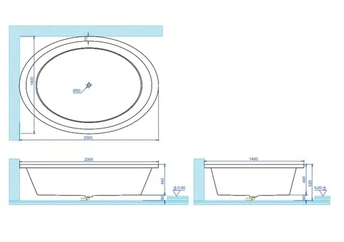 אמבטיה אקרילית 200/140 ס"מ. ניקוז באמצע.
