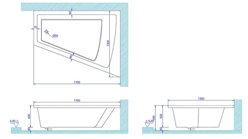 תכולת מים: 180 ליטר. משקל: 40 ק"ג. האמבטיה כוללת אנטיסליפ נגד החלקה וחיזוק פלדה היקפי.