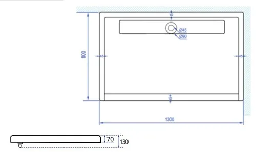 אגנית אקרילית עם תעלת ניקוז 130*80 ס"מ MTI231