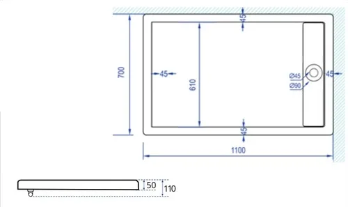 אגנית אקרילית עם תעלת ניקוז 110*70 ס"מ MTI262