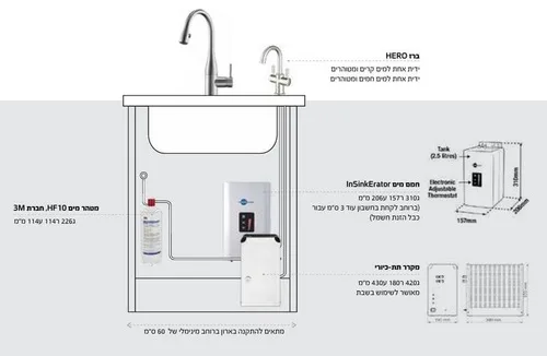 מסופק עם מקרר תת כיורי- יחידת קירור מים קומפקטית המספקת מים קרים כקרח.