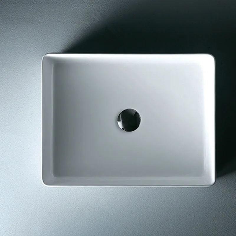כיור מונח מלבני לבן מבריק דפנות דקות