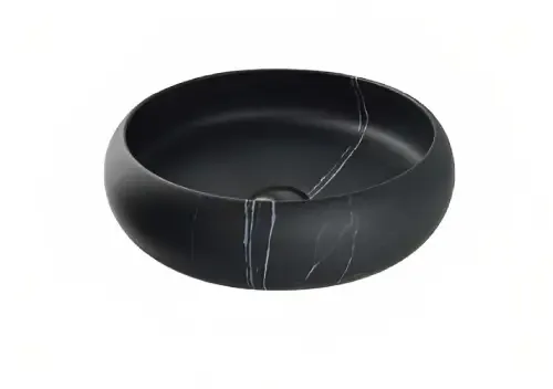 כיור מונח שחור מט עם גידים מרטיני כולל ונטיל לחיצה / אביק חרס תואם.