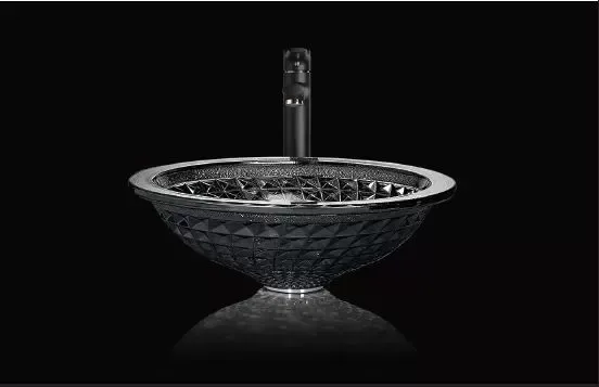 כיור מונח זכוכית קאראט קריסטל שחור שקוף