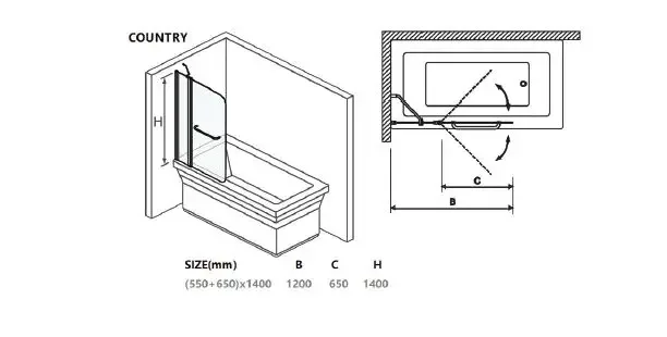 אמבטיון COUNTRY - קבוע ודלת 120 קאנטרי פרופיל זהב