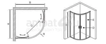 – מפרט: שתי דפנות קבועות ושתי דלתות הזזה מעוגלות הנעות בתוך מסילה.