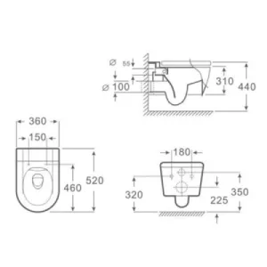 אסלת חרס תלויה רימלס , שטיפה היקפית.