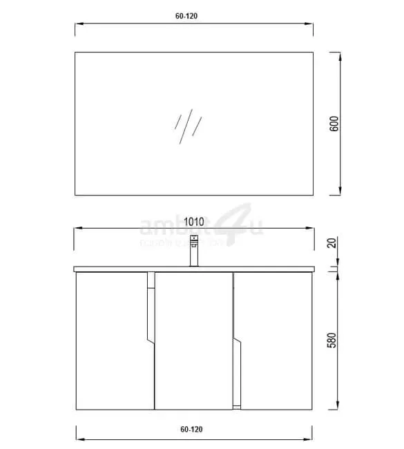 מגירות טריקה שקטה + משטח חרס אינטגרלי + מראה קריסטל בלגי מרחפת