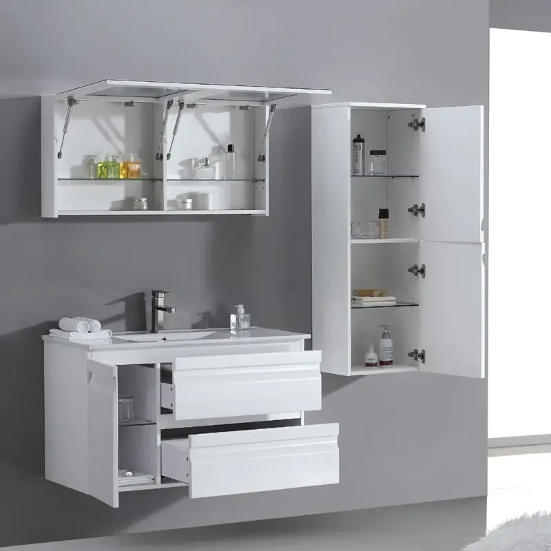 מגירות ודלתות טריקה שקטה + משטח חרס אינטגרלי + מראה קריסטל בלגי מרחפת