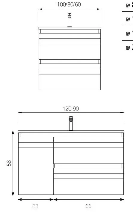 120 ס"מ – 2 מגירות/ 2 מגירות ודלת / 4 מגירות