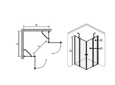 מקלחון פינתי 2 קבועים + 2 דלתות זהב מט 90/90 מקס