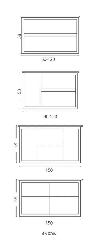 150 ס"מ – 2 מגירות + 2 דלתות.