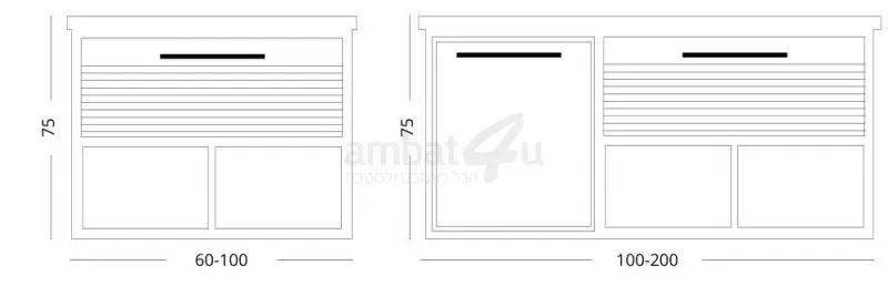 150-200 ס"מ – 2 דלתות + מגירה ברמצע עם 2 תאים