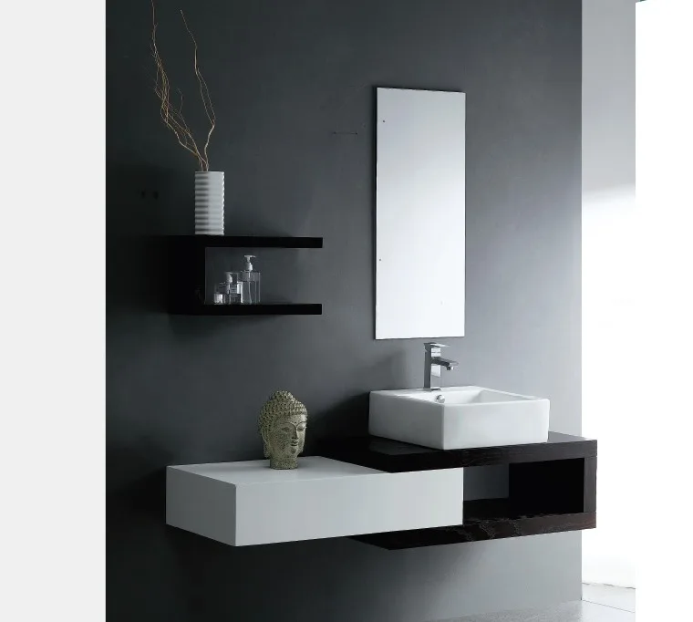מגירה טריקה שקטה + משטח פורניר בשילוב אפוקסי + מראה קריסטל בלגי מרחפת