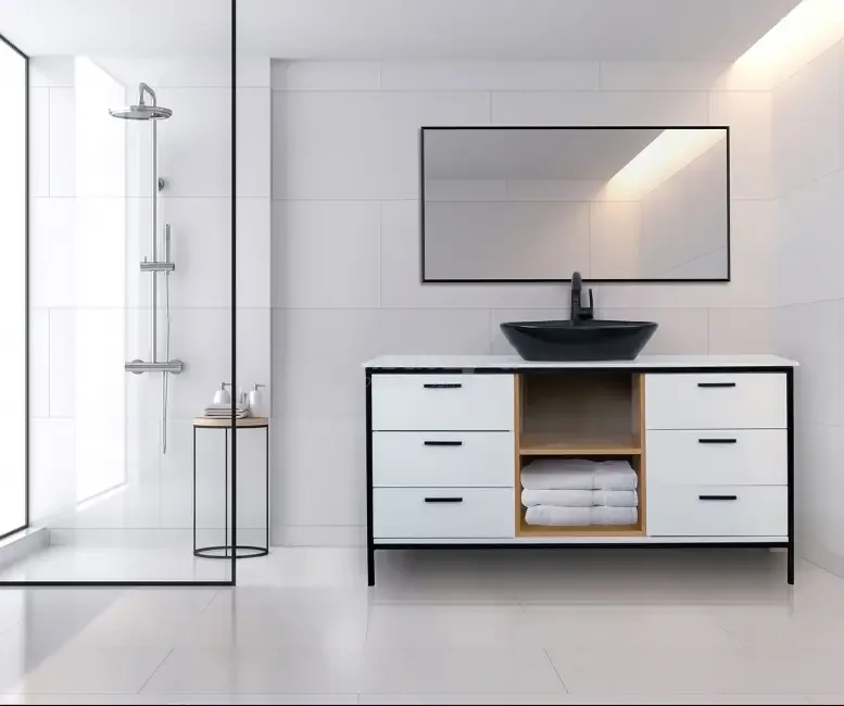 מגירות טריקה שקטה + משטח בוצ'ר / משטח קוריאן + מראה קריסטל מרחפת.